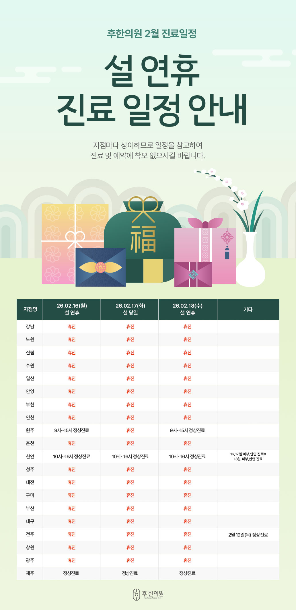 2026년 2월 설 연휴 진료일정