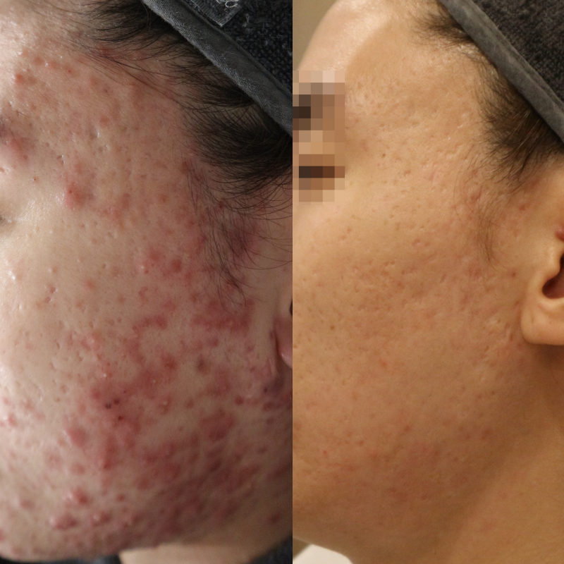 [ 후한의원 부천점 ] 얼굴 여드름/자국 치료 전후사진 치료기간 : 2024.02.07 ~ 2024.09.20 치료방법 : 약침압출 20회 + pdt 3회 + 아크네스틱 6달 + 홈케어