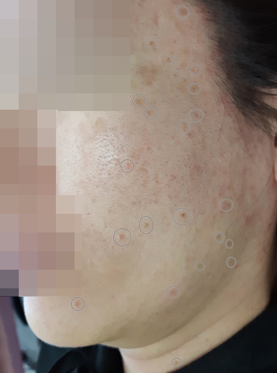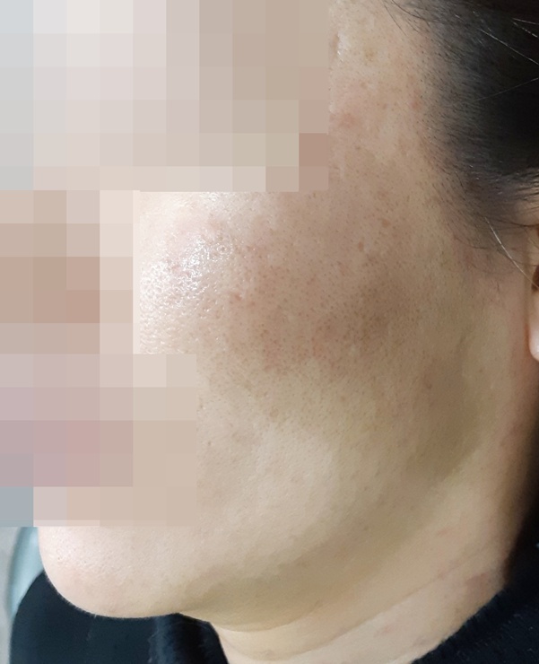 양볼에 생긴 편평사마귀 치료 사진입니다.