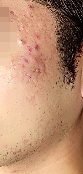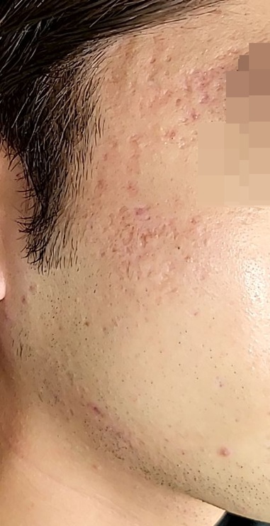 눈옆 부위에 생긴 패인흉터 치료 사진입니다.