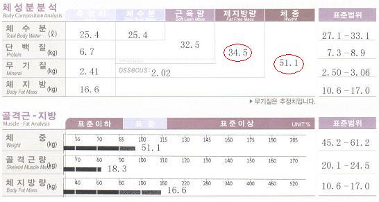 최종 내원시 신장 159.1cm/체중 51.1kg/체지방량 34.5kg