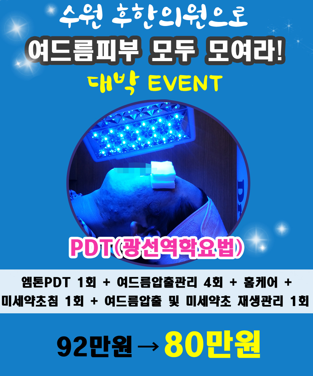 후한의원 만의 자체 홈케어 제품으로 치료 이후에도 예민해진 피부에 적합합니다. ![]() 현재 후한의원 수원점에서는 PDT이벤트를 진행중에 있어요~^^
