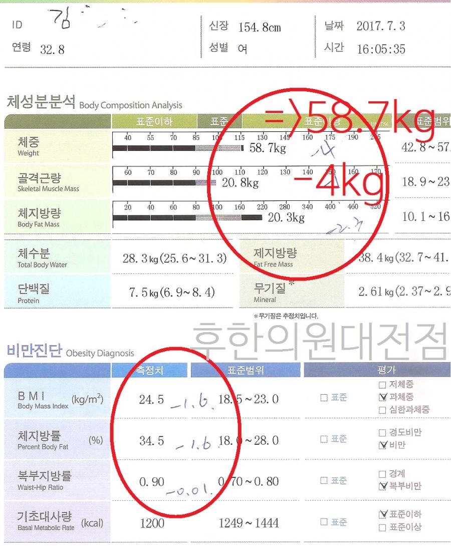 시간이 안 되어서 감량후 유지하다가 한달만에 오셔서 검사를 받으셨네요.