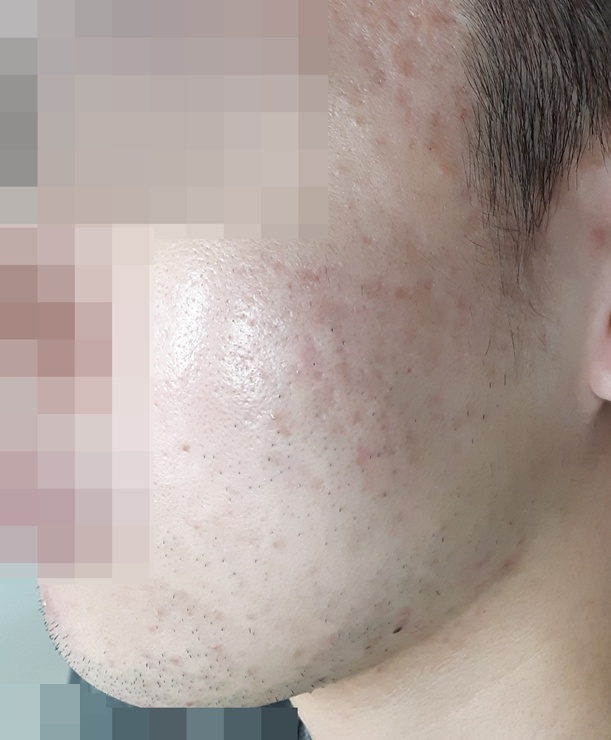 양볼 부위에 생긴 패인흉터 치료 사진입니다.
