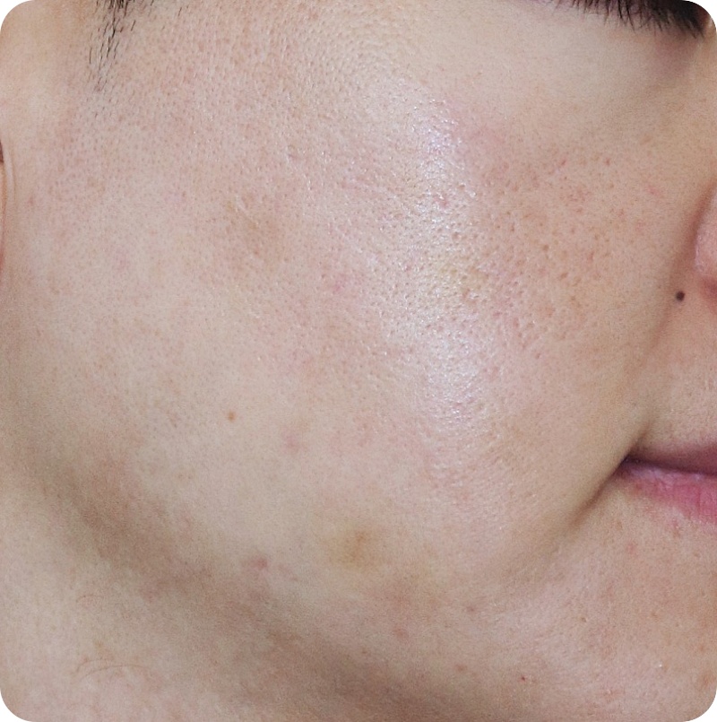 240905 트랜스테파라피 241203 /한참 휴식후 피비테라피 + 251011 아이스픽 형 흉터 TYPE 3) 피부가 굉장히 얇으며 모공이 거의 보이지 않는 아이스픽형 흉터 섬세한 미세이식술 후 닥터포션 약침을 이용한 재생력을 높이는 방식으로 치료