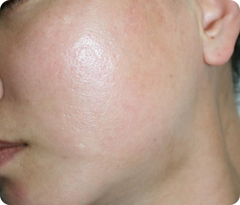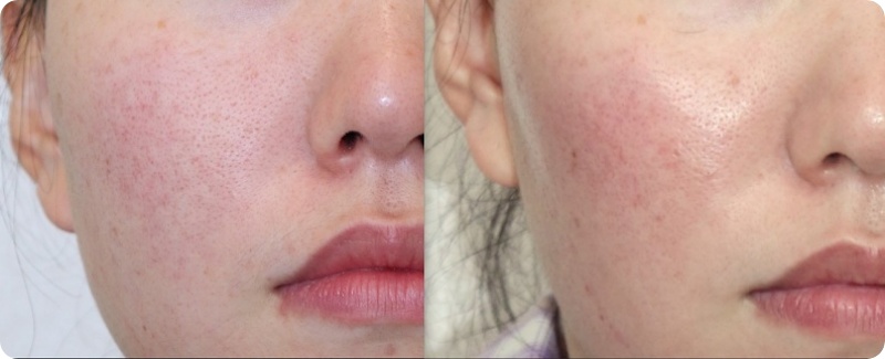 250331 추가시술을 원하여 내원 아이스픽 형 흉터 TYPE 2) 모공이 벌어지고 피부 두께가 비후된 아이스픽형 흉터 또는 큰 모공성 흉터 미세이식술 후 모양을 잡고있는 섬유성 연결이 강하여 원래 모양으로 돌아가려는 성질과 함께 비후 되어 있어 두꺼워진 피부를 얇게 하면서 섬유성 연결을 풀어주어야 한다. 이때는 미세이식술과 함께 피비테라피+를 하면 효과가 좋다.