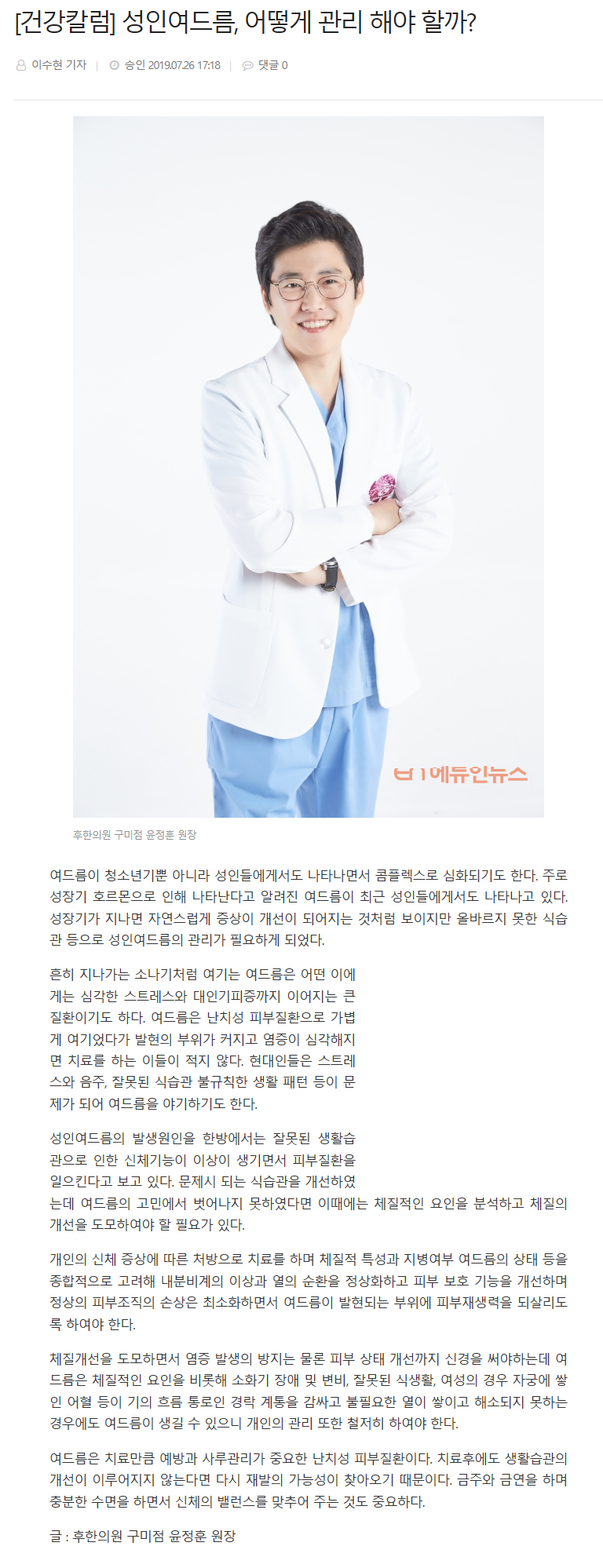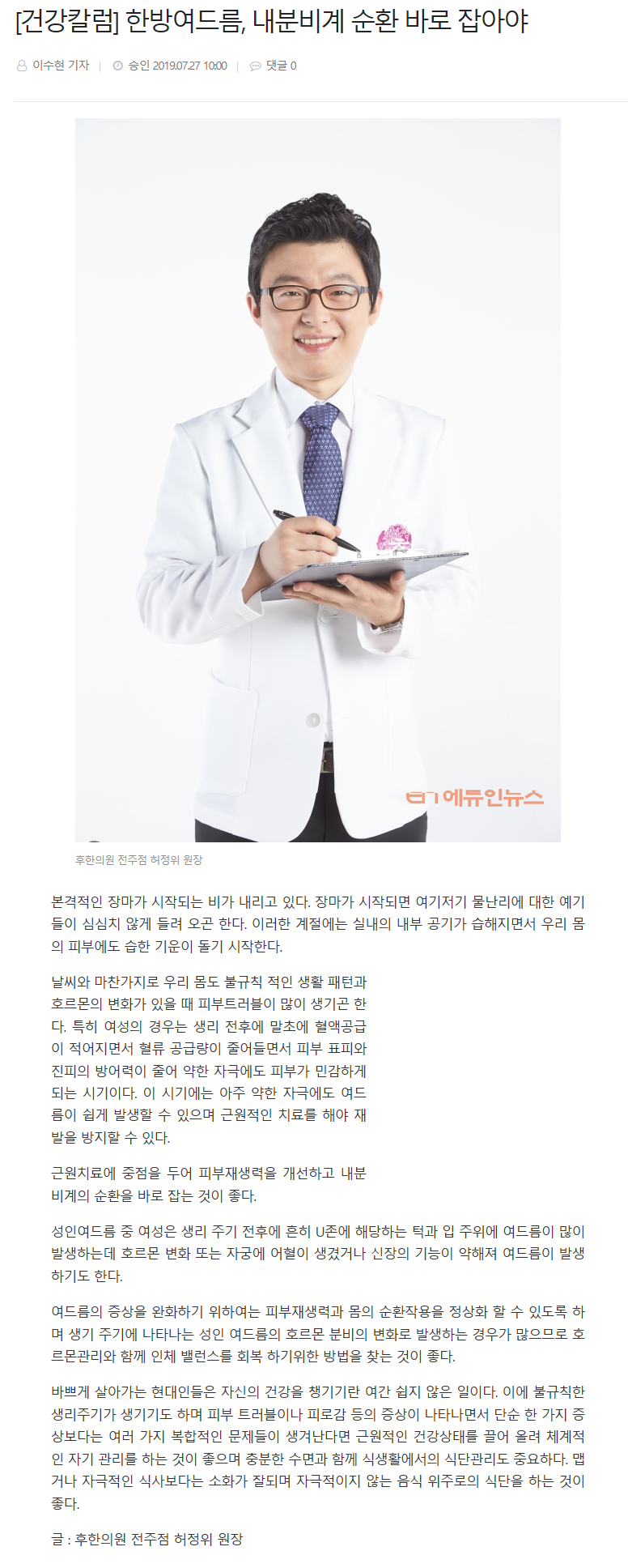 후 의료진 치료 칼럼