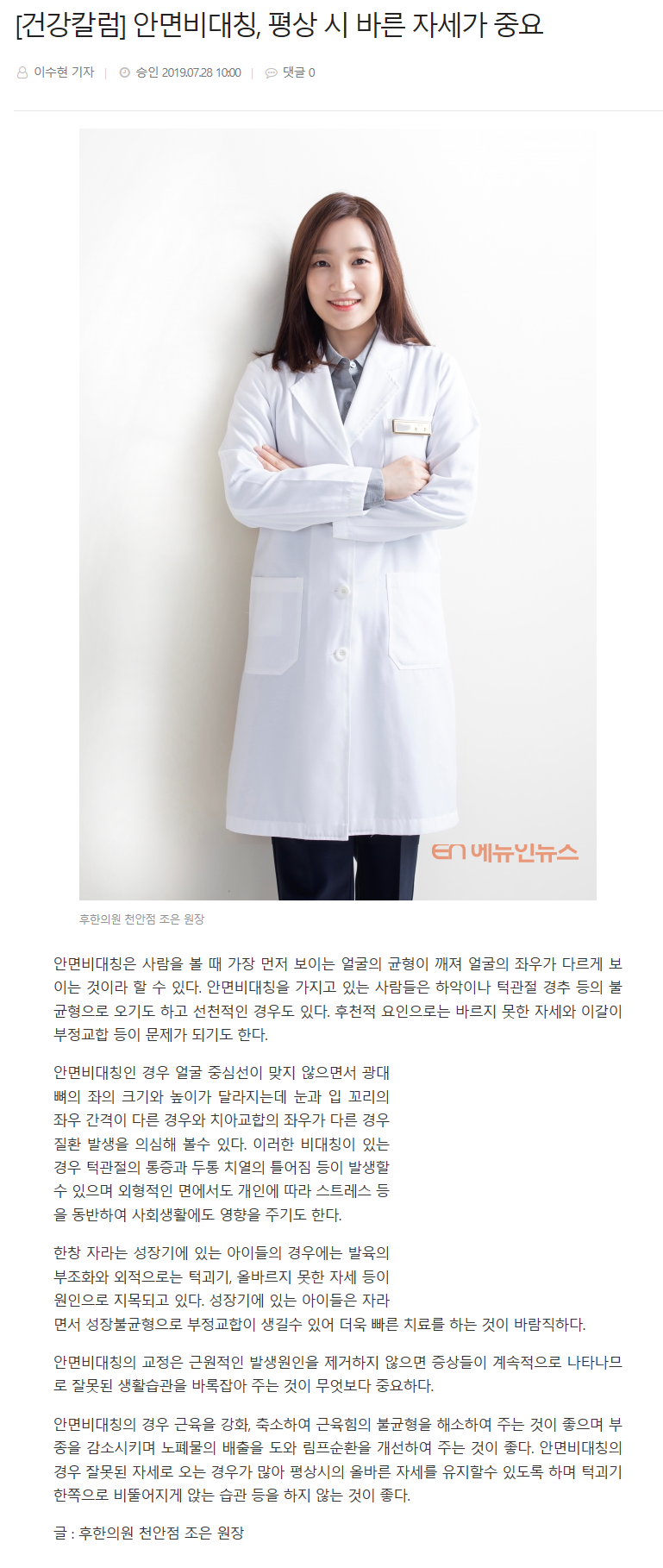 후한의원 천안점 : [건강칼럼] 안면비대칭, 평상 시 바른 자세가 중요