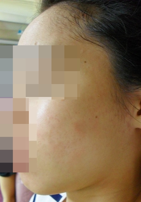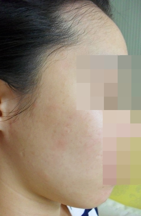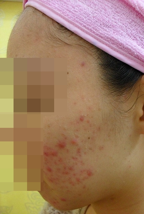 양볼에 생긴 화농성 여드름 치료 사진입니다.