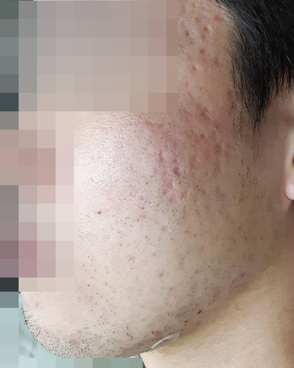 양볼 부위에 생긴 패인흉터 치료 사진입니다.