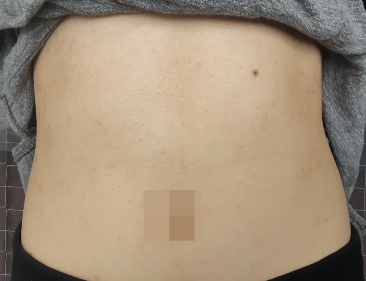 복부에 생긴 편평사마귀 치료 사진입니다.
