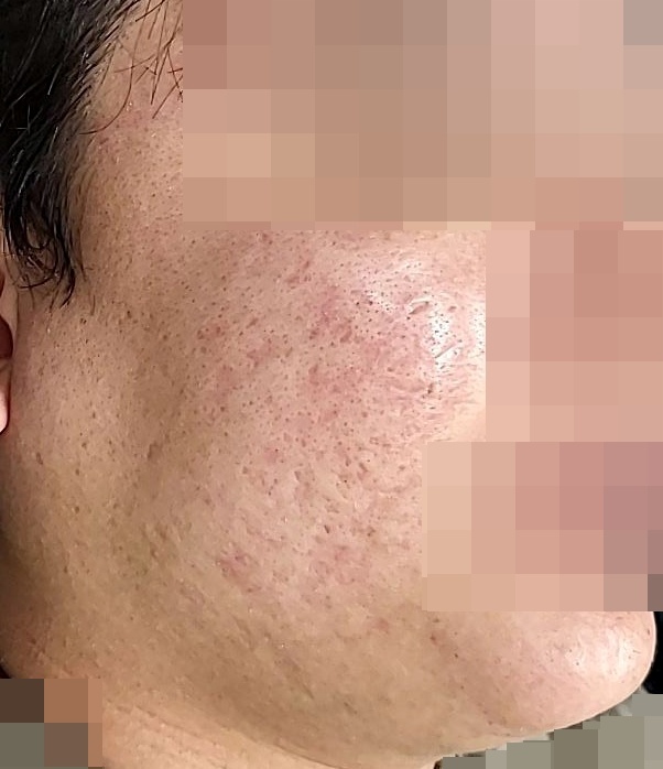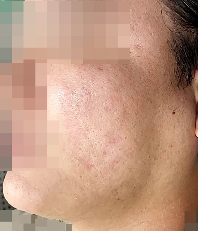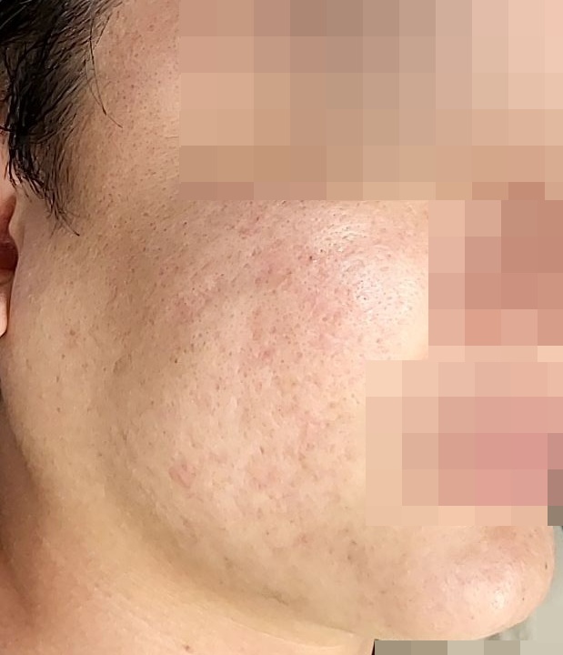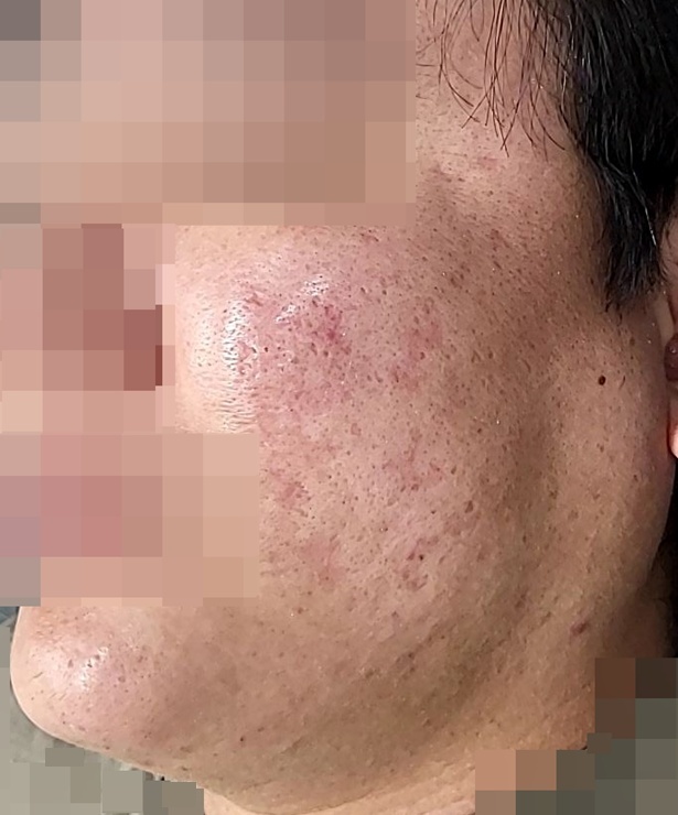 양볼에 생긴 패인흉터 치료 사진입니다.